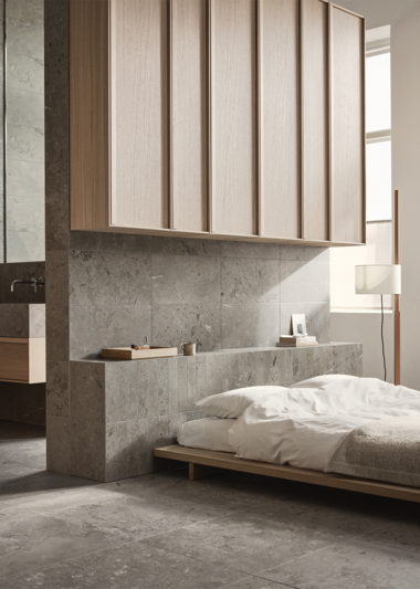 Runö Dark Grey is a dark gray porcelain stoneware with a limestone look in a matte surface. Runö is very lifelike with fossil-like details and beautifully varying tonal differences between the tiles. Inspired by the stone quarried along the limestone belt that stretches from Öland, under the Baltic Sea and the old Swedish settlements on the islands off the coast of Estonia and on through Tallinn up to St. Petersburg.