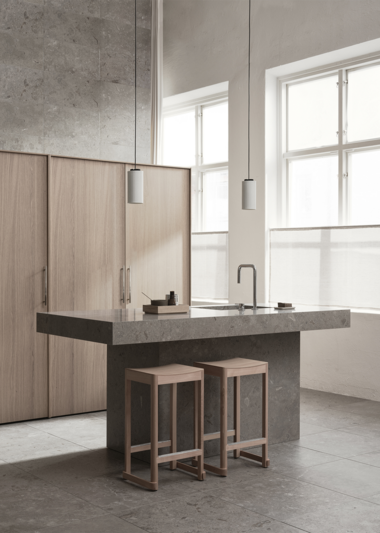 The series includes countertops in the beautiful satin matte Honed finish, which creates lovely reflections and light play across the surface. The series also offers tiles for floors and walls.