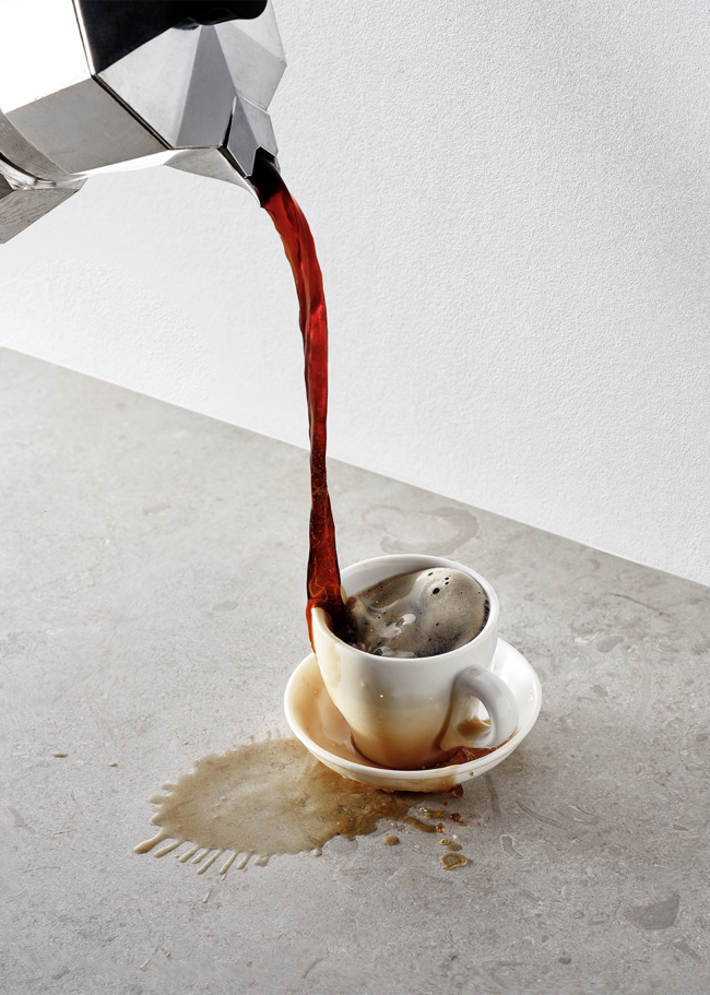 The surface can withstand all types of cleaning agents, from acidic to alkaline, but it’s best to avoid them whenever possible – for the sake of the environment. A great eco-friendly tip is a homemade vinegar spray!