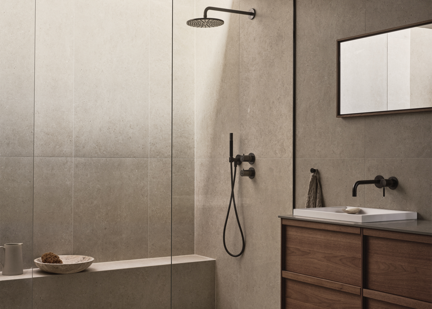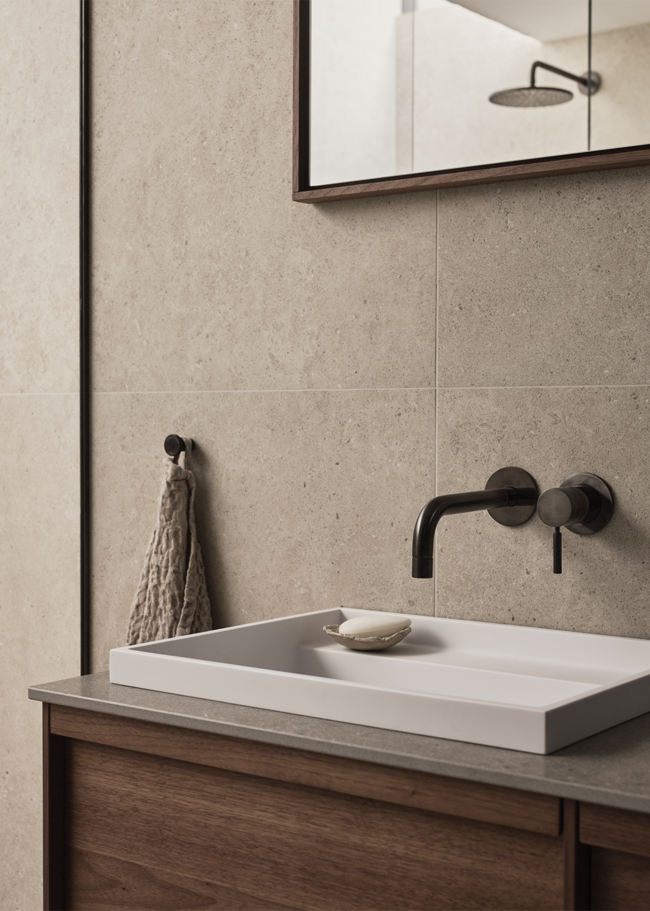 Varianten Honed er smukt silkemat slebet, mens mat har en lidt mere rå og skridsikker overflade.