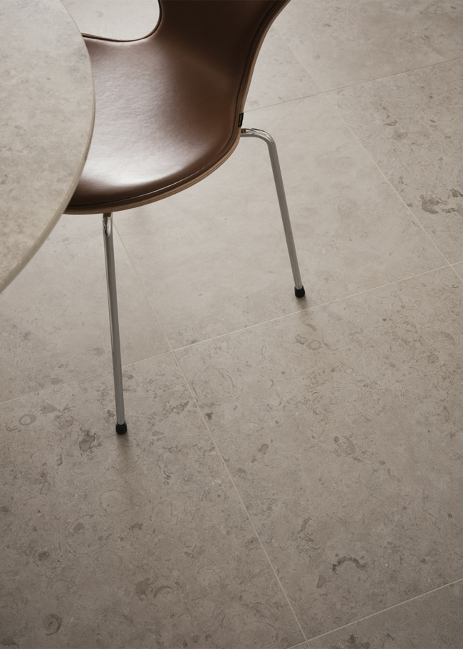 Norrvange Light Grey Honed er fremstillet med den nyeste 3D.Fit-teknologi, som skaber en realistisk relief, hvor detaljer i mønster og farvenuancer kan mærkes ved berøring og ses i lysets spil over overfladen.