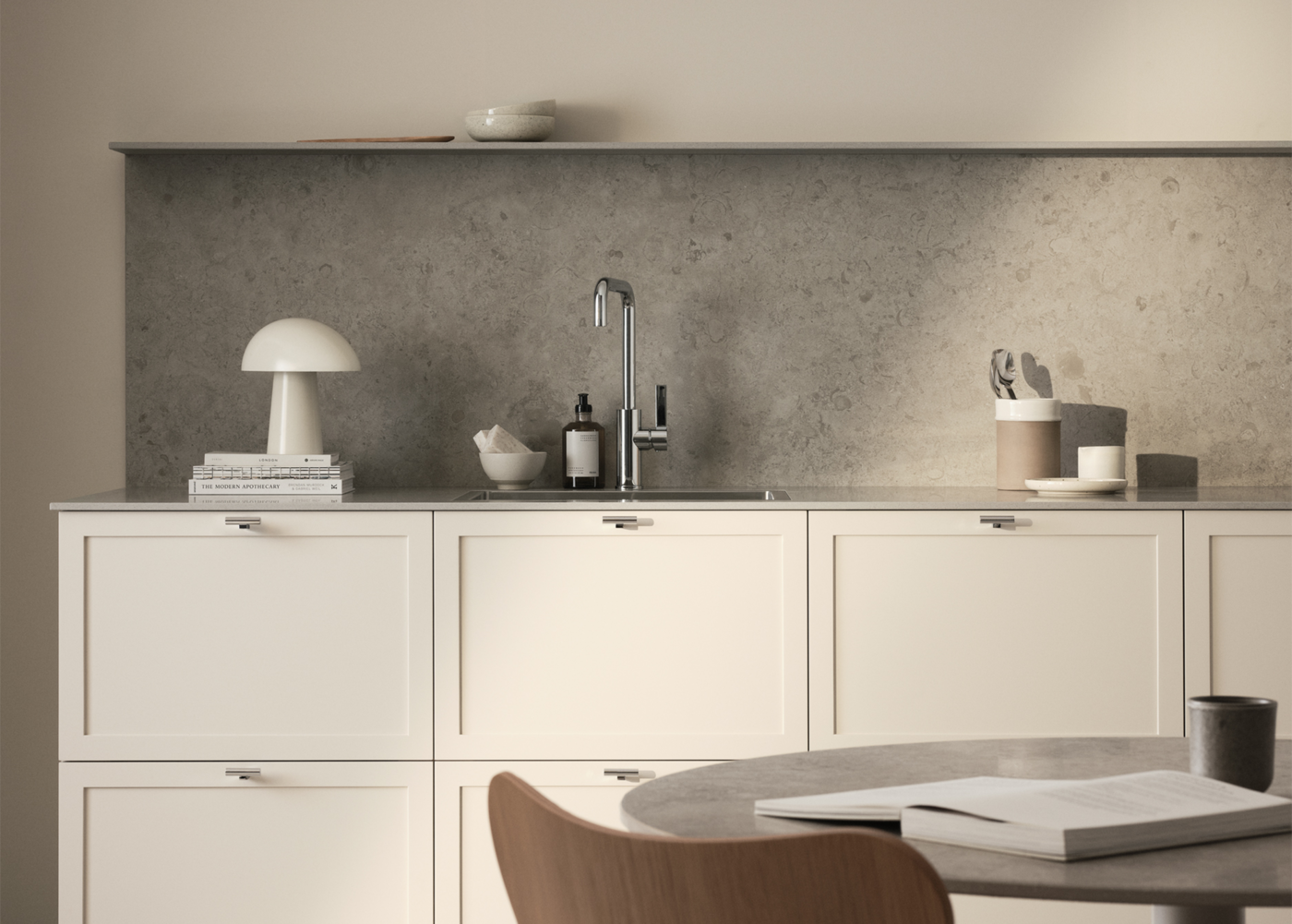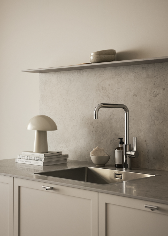 Norrvange Light Grey Honed er en moderne og praktisk fortolkning af den gotlandske kalkstens unikke karakter i lysegrå nuancer. Fossillignende detaljer og subtile farveskift indfanger Norrvange-kalkstenens naturlige variationer. Det perfekte valg til køkken og badeværelse, hvor æstetik og funktionalitet går hånd i hånd.