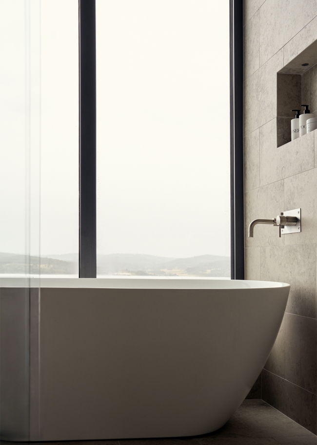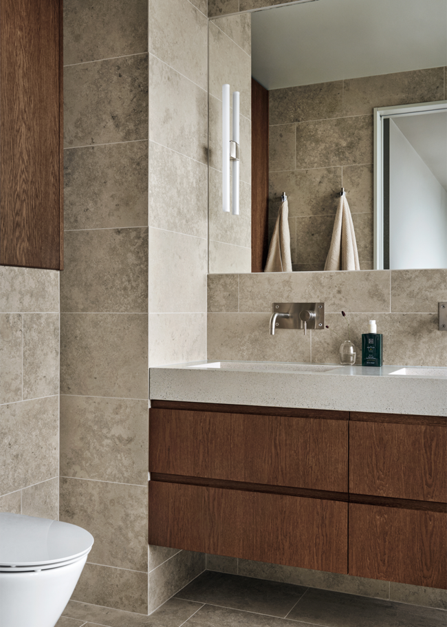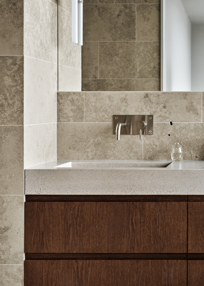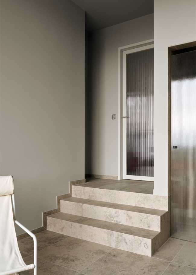 I denne arkitekttegnede villa er farveskalaen holdt i naturinspirerede toner. Jura Select Classic, med sin let varme nuance og karakteristiske fossilindslag, bidrager med en følelse af ro i hjemmet. Farven er omhyggeligt udvalgt for bedst muligt at repræsentere den umiskendelige og klassiske gråbeige jurafarve. Stenen, som blev dannet i juraperioden, brydes primært i kalkstensbrud omkring Bayern og er gennem tiden blevet anvendt i utallige bygninger, statuer og andre arkitektoniske værker over hele Europa.