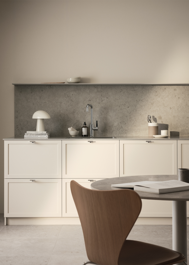 Jura Select Ivory Honed er en smuk satinmat poleret bordplade i granitkeramik inspireret af Jura-kalkstenen, som udvindes i det sydlige Tyskland. Stenen er meget populær som bygge- og indretningsmateriale samt som bordplade. Overfladen har et naturligt udseende med en harmonisk variation i mønster og tone og er rig på fossillignende detaljer.